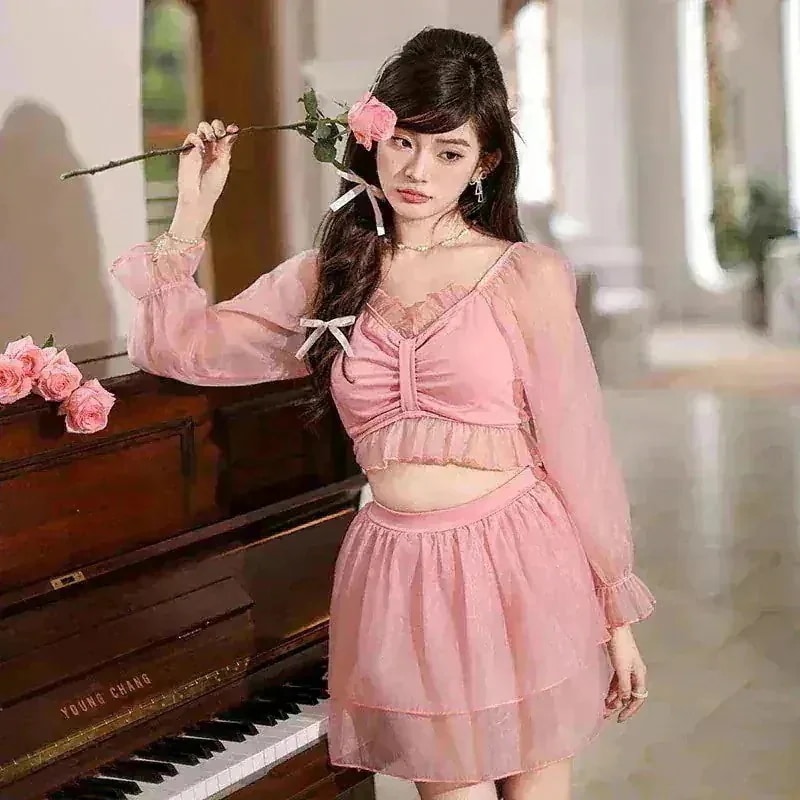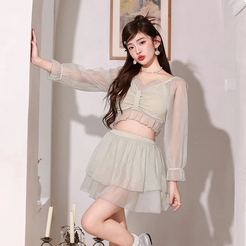 スカートの部分はボリュームが出てしまい、着太りするのでスカートの部分を中にしまい、短パンにレースを付けたようにしました。