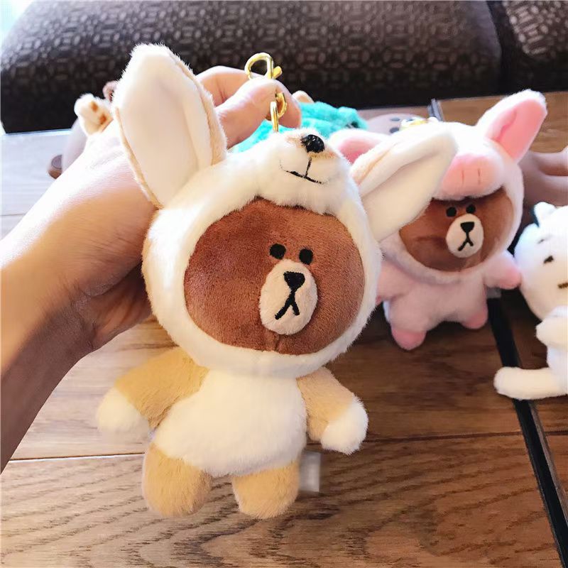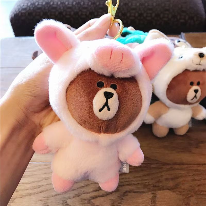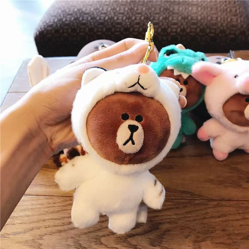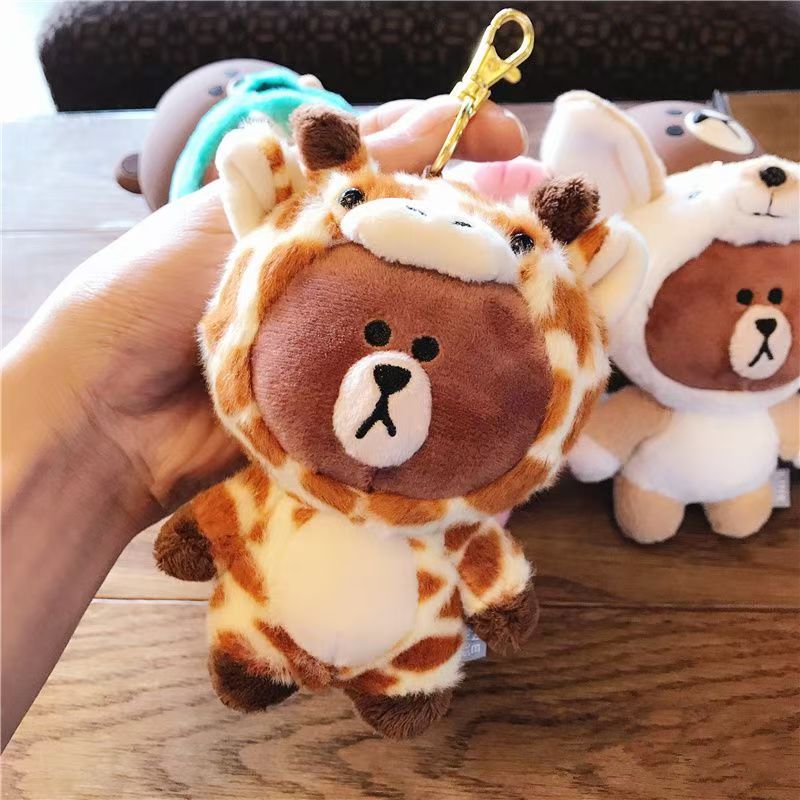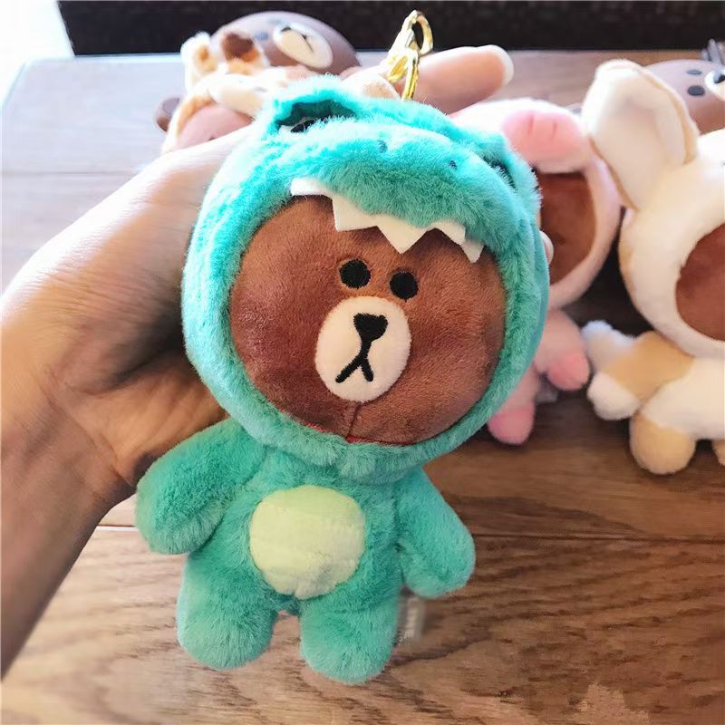 韓国版LINEブラウンベア変装恐竜長津鹿豚ペンダントカーキーチェーンバッグペンダントハンギングぬいぐるみ