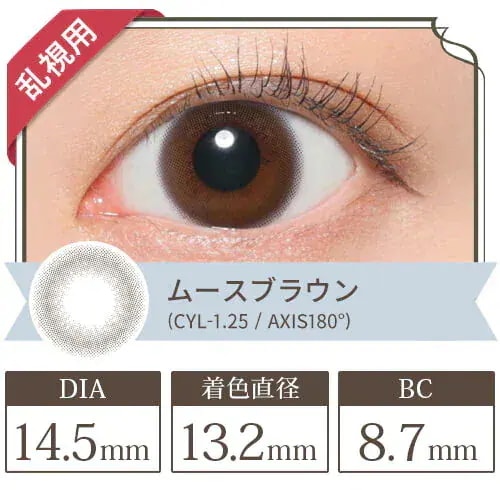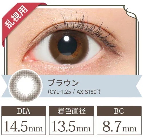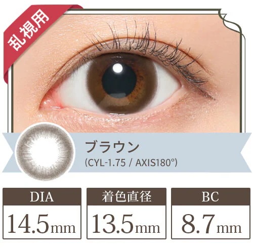 5 5eri*** 2026.01.16 カラー(乱視度数CYL 乱視軸AXIS):ブラウン(CYL-1.75 AXIS180°) 度数:-3.00オプション : カラー(乱視度数CYL/乱視軸AXIS):ブラウン(CYL-1.75/AXIS180°) / 度数:-3.00 肌タイプ : 混合肌 肌トーン : イエベ 肌の悩み : ニキビ・肌荒れ, 毛穴, 乾燥, しわ・たるみ, シミ
