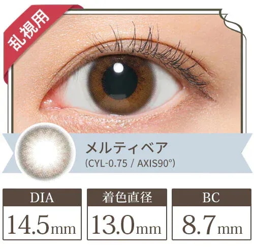 5 5s.r*** 2026.04.09 カラー(乱視度数CYL 乱視軸AXIS):メルティベア(CYL-2.25 AXIS180°) 度数:-7.50(+210円)オプション : カラー(乱視度数CYL/乱視軸AXIS):メルティベア(CYL-2.25/AXIS180°) / 度数:-7.50(+210円) 肌タイプ : 脂性肌 肌トーン : イエベ 肌の悩み : ニキビ・肌荒れ, 毛穴, シミ