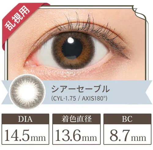 5 5Cik*** 2025.06.05 カラー(乱視度数CYL 乱視軸AXIS):シアーセーブル(CYL-1.75 AXIS180°) 度数:-4.50(+210円)オプション : カラー(乱視度数CYL/乱視軸AXIS):シアーセーブル(CYL-1.75/AXIS180°) / 度数:-4.50(+210円) 肌タイプ : 脂性肌 肌トーン : イエベ 肌の悩み : ニキビ・肌荒れ, くすみ・色むら
