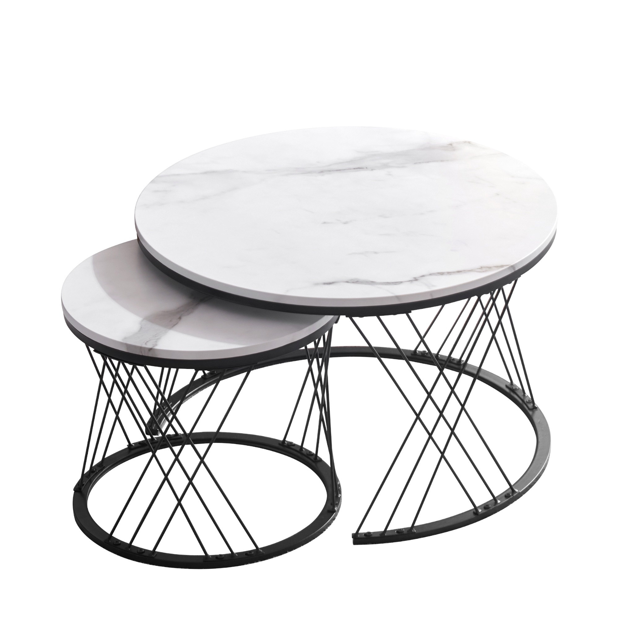 センターテーブル ネストテーブル ローテーブル 入れ子式 天板 大理石調 2個セットサイドテーブルローテーブル 丸 円型テーブル ローテーブル北欧風 一人暮ら