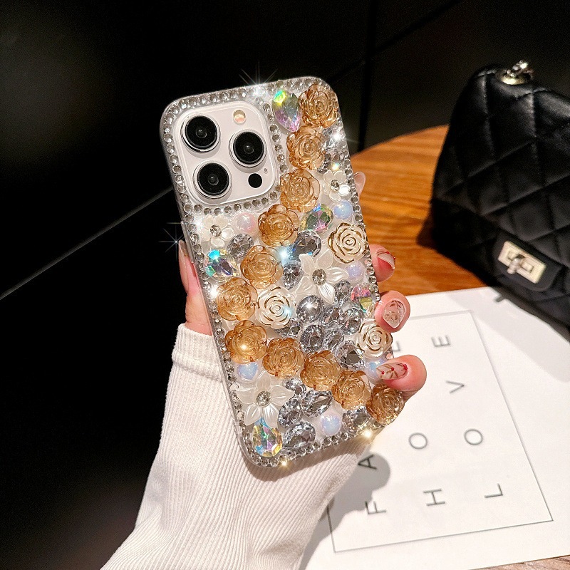 ラインストーンローズiPhone15PromaxケースiPhone16高級iPhone13アクリルiPhone14女性
