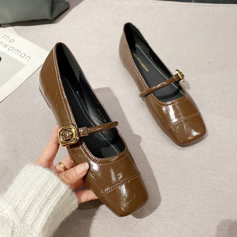 レトロフレンチメリージェーン女性の靴の新しい正方形のヘッドシングルシューズ女性フラットシューズの気質ソフトソール
