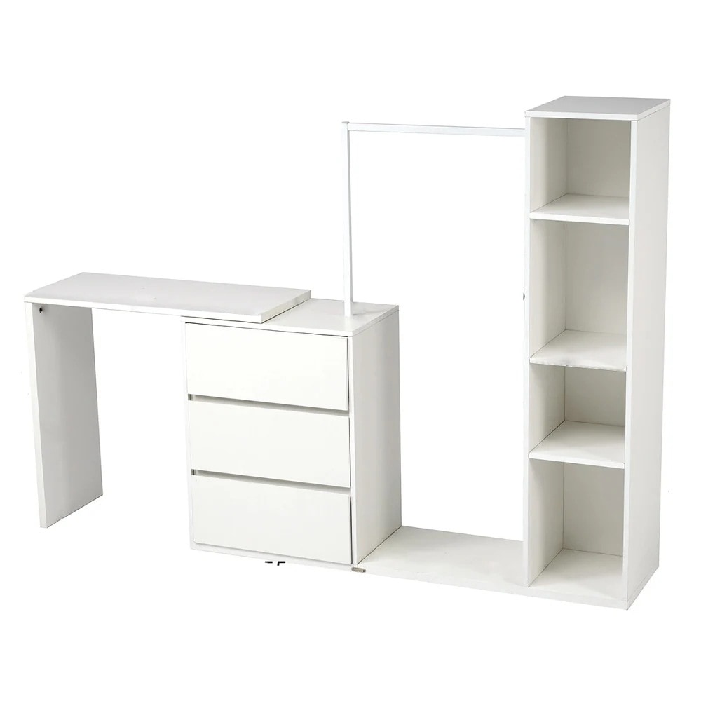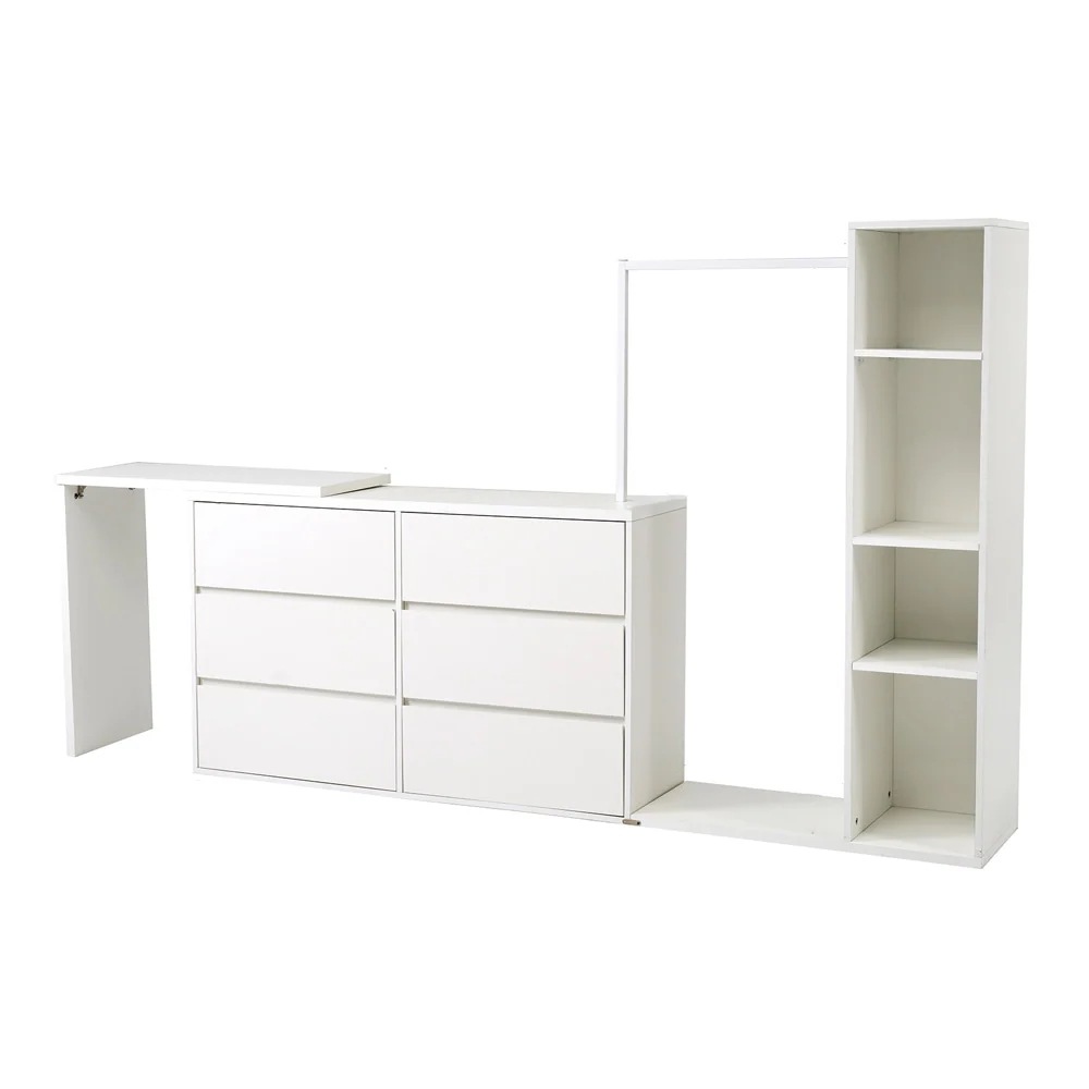 【国内即日発送】6段キャビネット+幅調整デスク+ ハンガーラック+ラック 化粧台 デスク木製 チェスト サイドボード リビングボード ハンガーラック 収納チェスト タンス キッチンボード 衣類 おし