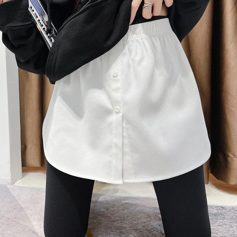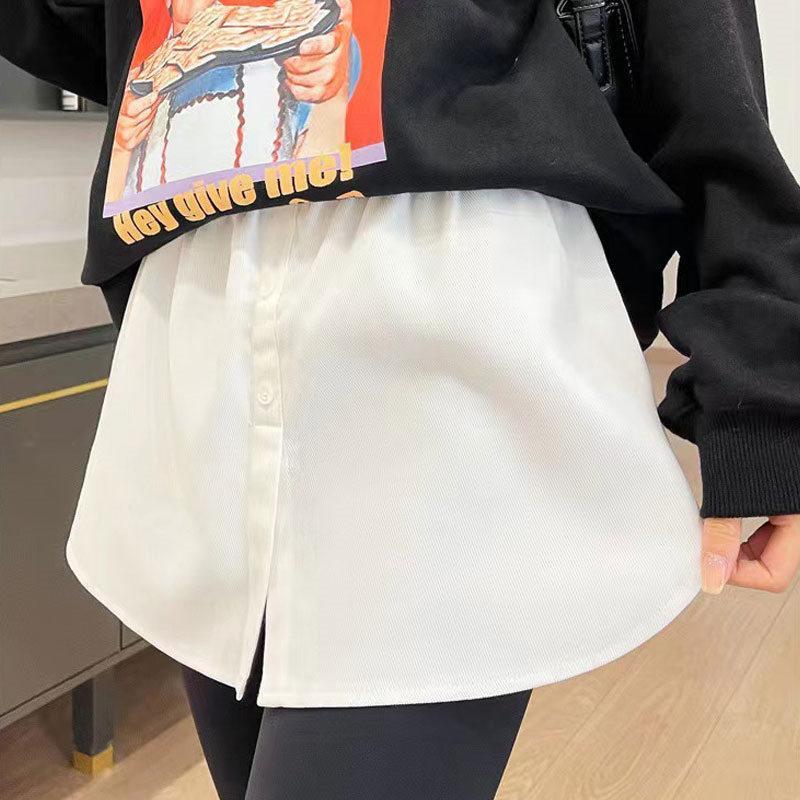 付け裾 つけ裾 フェイクレイヤードシャツ レディース サイドスリット ウエストゴム ボタン 無地 シャツ 重ね着風 体型カバー カジュアル
