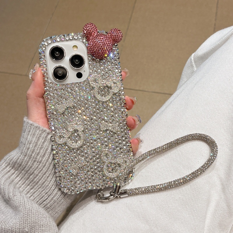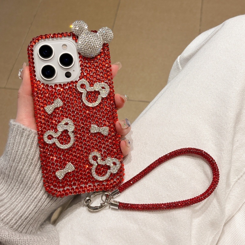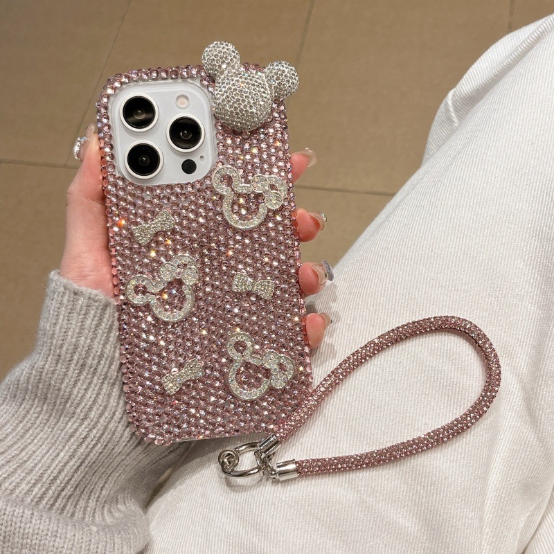 iPhone 15ネットスーパー仙16 promax爆閃14 promaxアイデア13/12 pro乙女心15 promax唯美16落下防止保護カバーを適用した高級豪華なフルドリルミッキー手綱