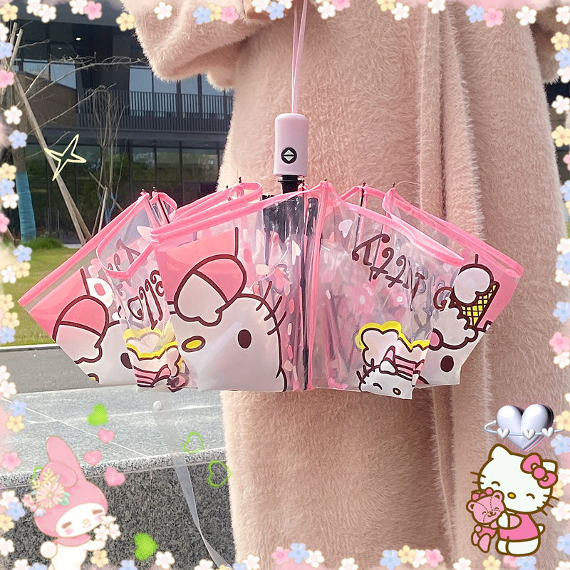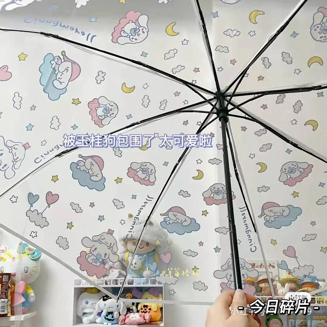 2026流行韓国のファッションのケイティキティ漫画透明厚い傘自動長い柄玉桂犬女子学生手動折りたたみクロミ496
