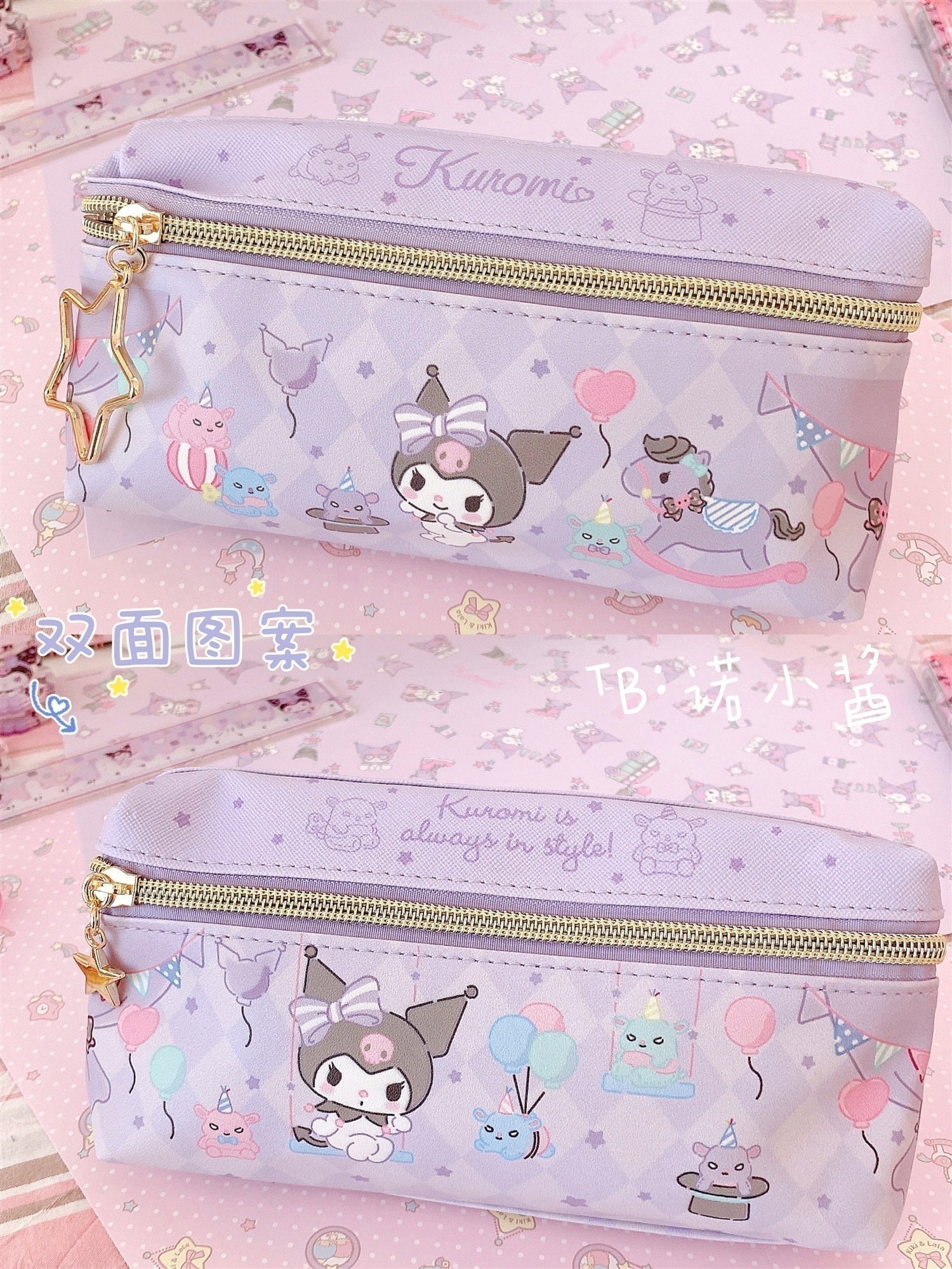 のニュースター クロミ シナモンドッグ 二層ジッパー筆箱 小中学生 女の子 ハート増量 収納袋