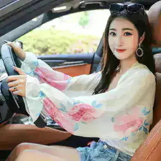 夏の新作 自転車や車の運転アウトドア用のサンコートとサンショール 女性用 シャンツ素材のプリント入りスカーフ カシューナット柄のスリーブカバー