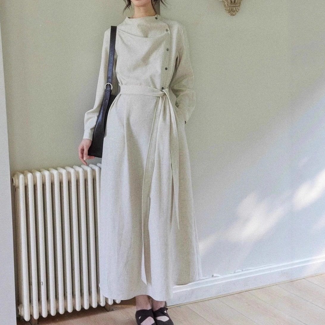 2025 秋冬 ニットワンピース デザイン感 秋 長袖ワンピース 高級感 ウエスト引き締め セータードレス レディース
