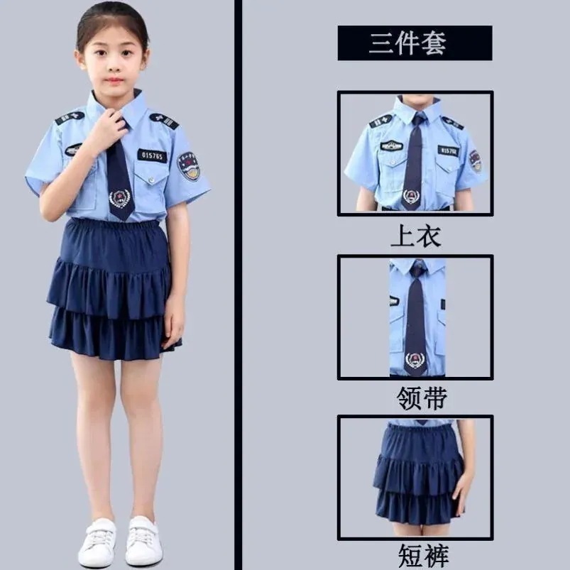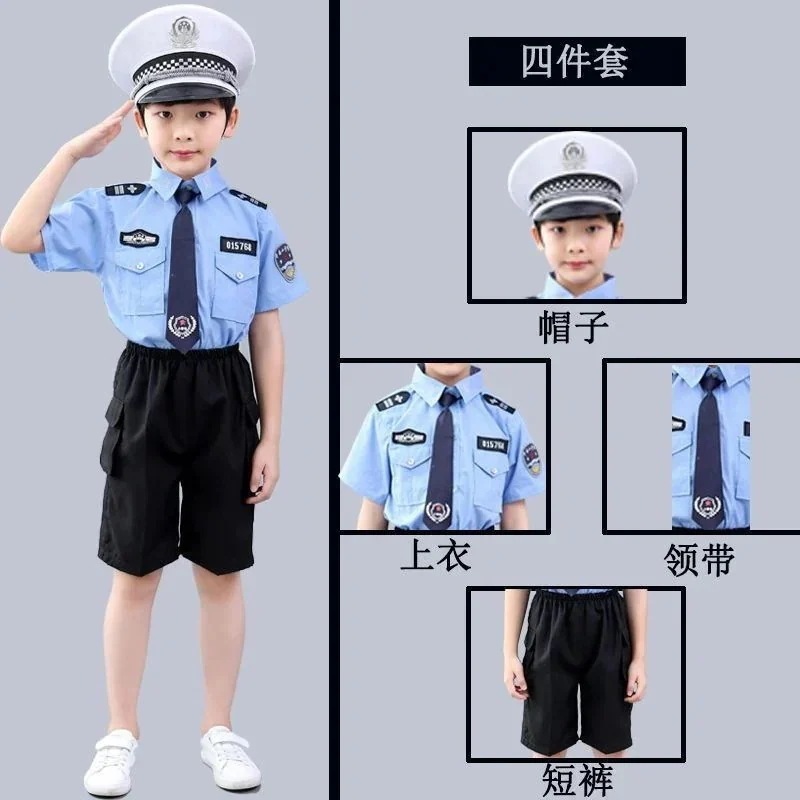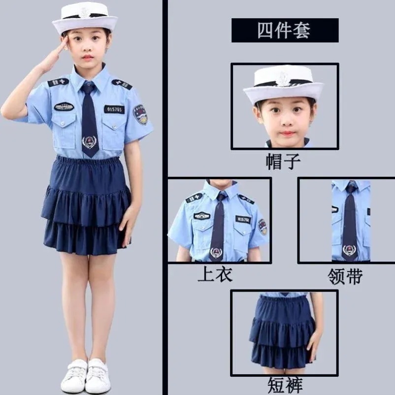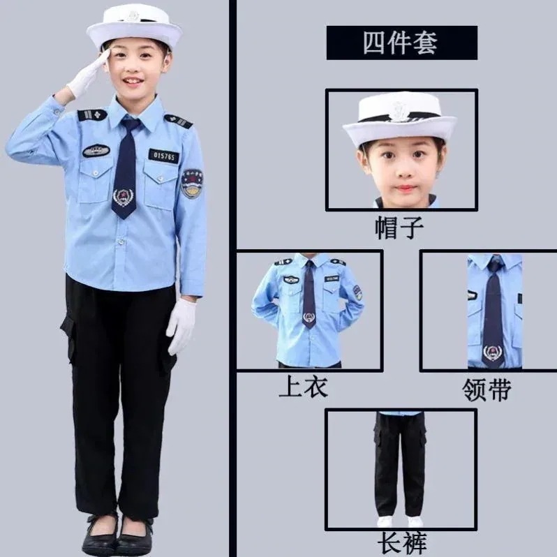42 児童警察スーツ特警服交通警官制服男児小公安警官服少女警察演出服