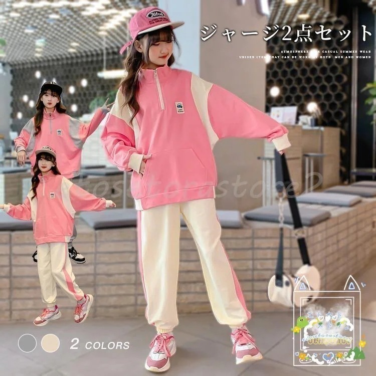 上下セット 子ども用ジャージ 子供ジャージ キッズ 女の子 セットアップ ジュニア 150 160 春秋 パーカー ジップアップ パンツ ダンス衣装 子供服 おすすめ