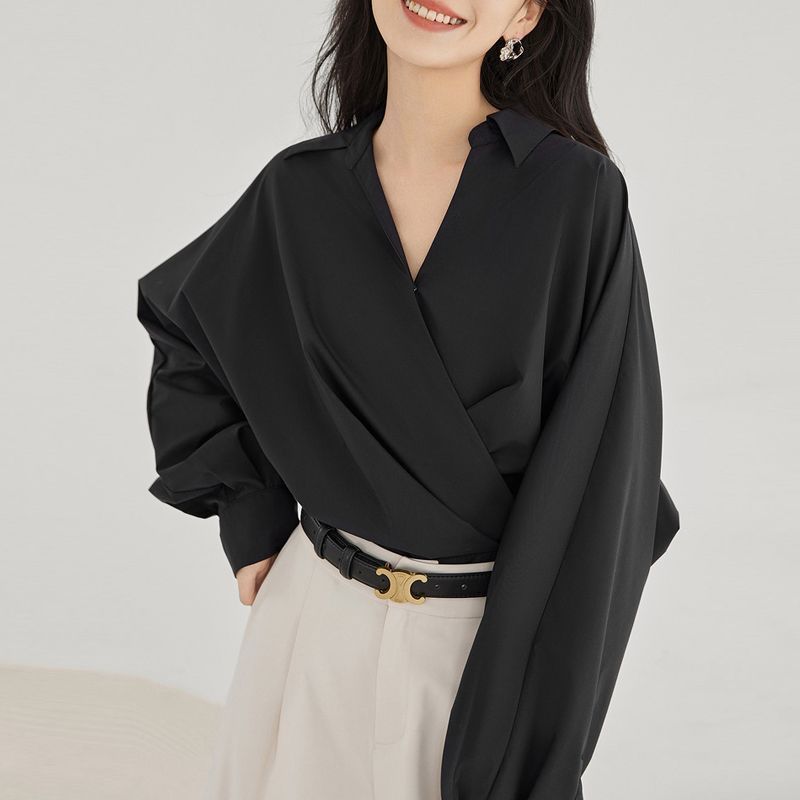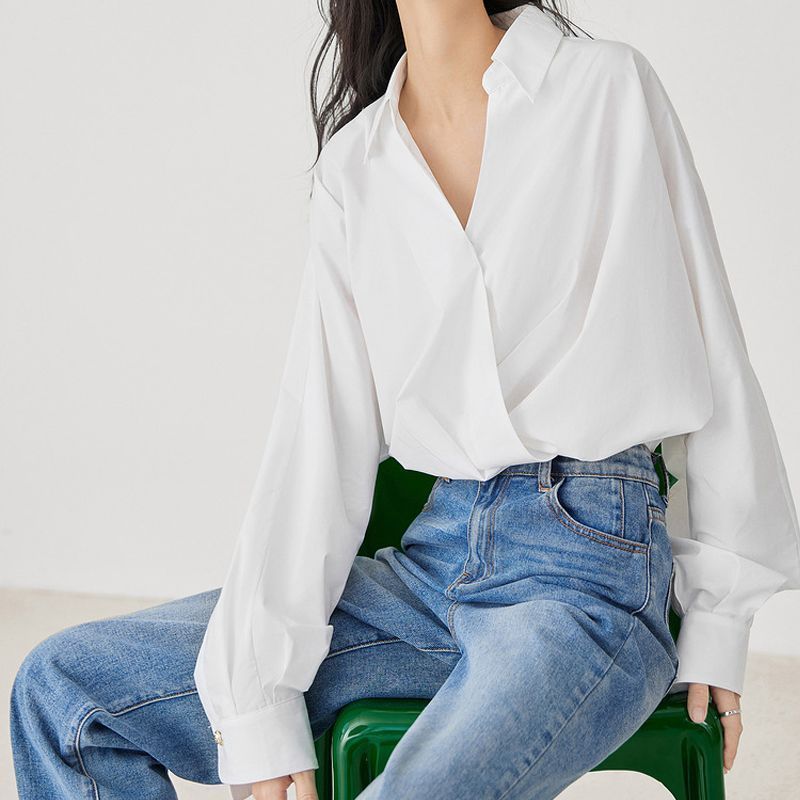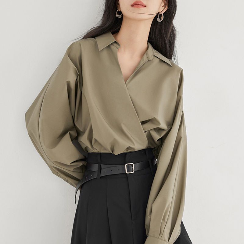 デザイン感 シャツ トップス レディース 新しい 春服 Vネックシャツ 高級感 シンプル 気質 ブラウス アウター 通勤 上着