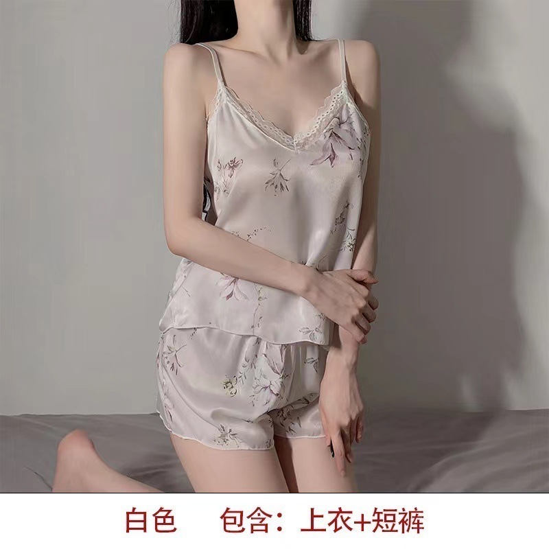 パジャマ女性夏アイスシルクサスペンダーショーツツーピース夏薄いセクションホームウェア