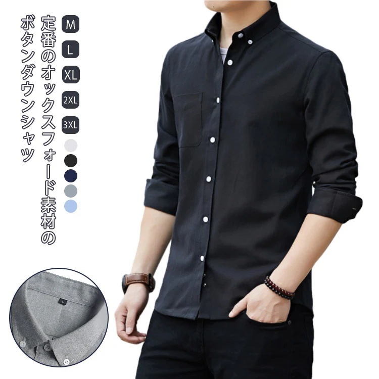シャツ メンズ オックスフォードシャツ ボタンダウンシャツ 無地 長袖 半袖 シャツ トップス カジュアル ビジカジ ビジネス 白シャツ 黒シャツ おしゃれ 父の日 メンズファッション 春 夏 秋 冬