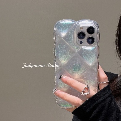 iPhone スマホケース キラキラ透明銀箔菱格 かわいい韓国 iPhoneケース アップル 多機種対応 IPHONE16/15/14/13/12/11/plus/promax 携帯ケース メガ割
