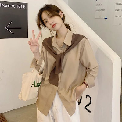 ブラウス 春人気新作!ストールフェイクツーピース長袖 ブラウスレディース 韓国ファッション カジュアル百掛け シフォンブラウス 通勤シアーシャツ 着痩せトップスUVカット/Tシャツ