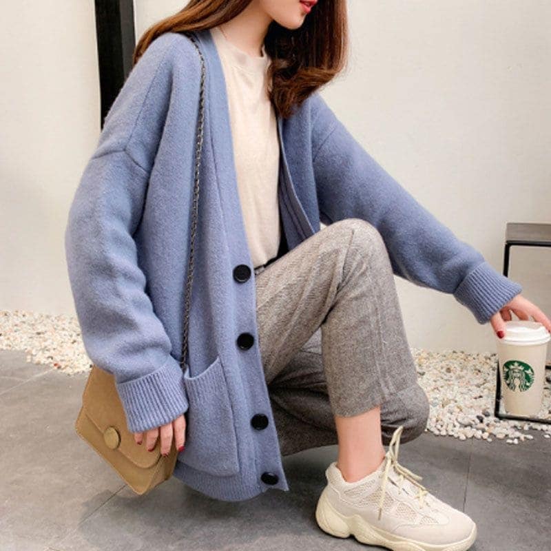 春新作 カーディガン レディース セミロングニットカーディガン シンプル無地 カジュアル カーディガン 春冬ニットセーター 大きいサイズ百掛け トップス 韓国ファッション 怠惰な風アウター