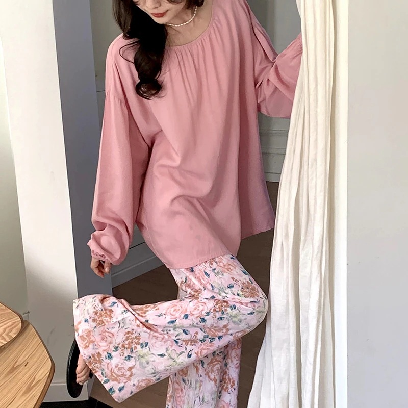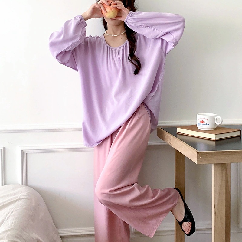 2025春新登場 高級感 日系 パジャマ レディース 無地 柔らかい快適 長袖 ルームウェア 春秋 通気性 大きいサイズ パジャマ セットアップ 韓国ファッション ゆったり部屋着 上下セット