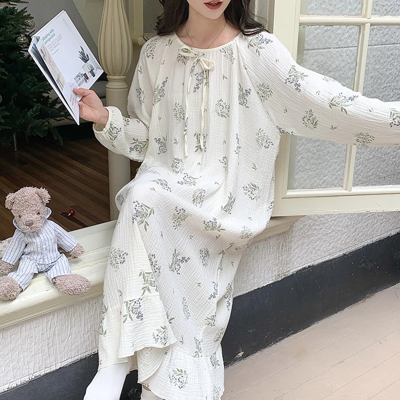 2025春新登場 可愛いネグリジェ 日系 パジャマ レディース 柔らかい快適 長袖 ルームウェア 通気性 ゆったり大きいサイズ 寝巻き 部屋着 体型カバー 着痩せ 外着