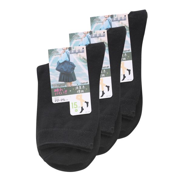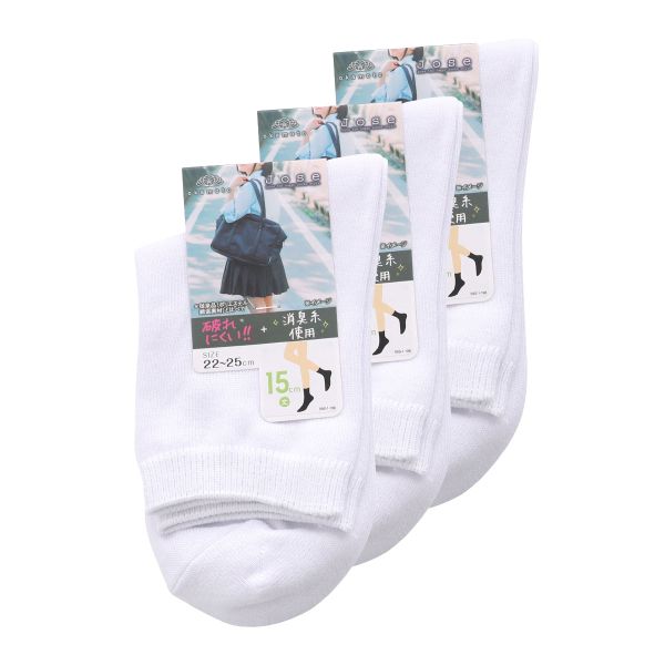 シロハトJOSE スクールソックス ジュニア 15cm丈 クルー丈 3足組 無地 破れにくい 消臭 靴下 2
