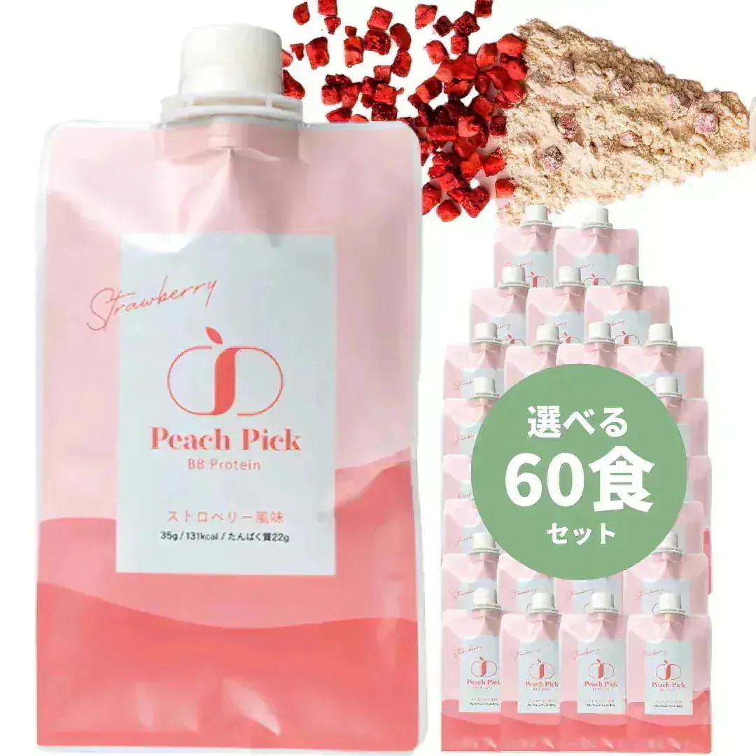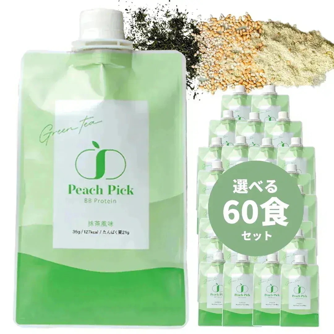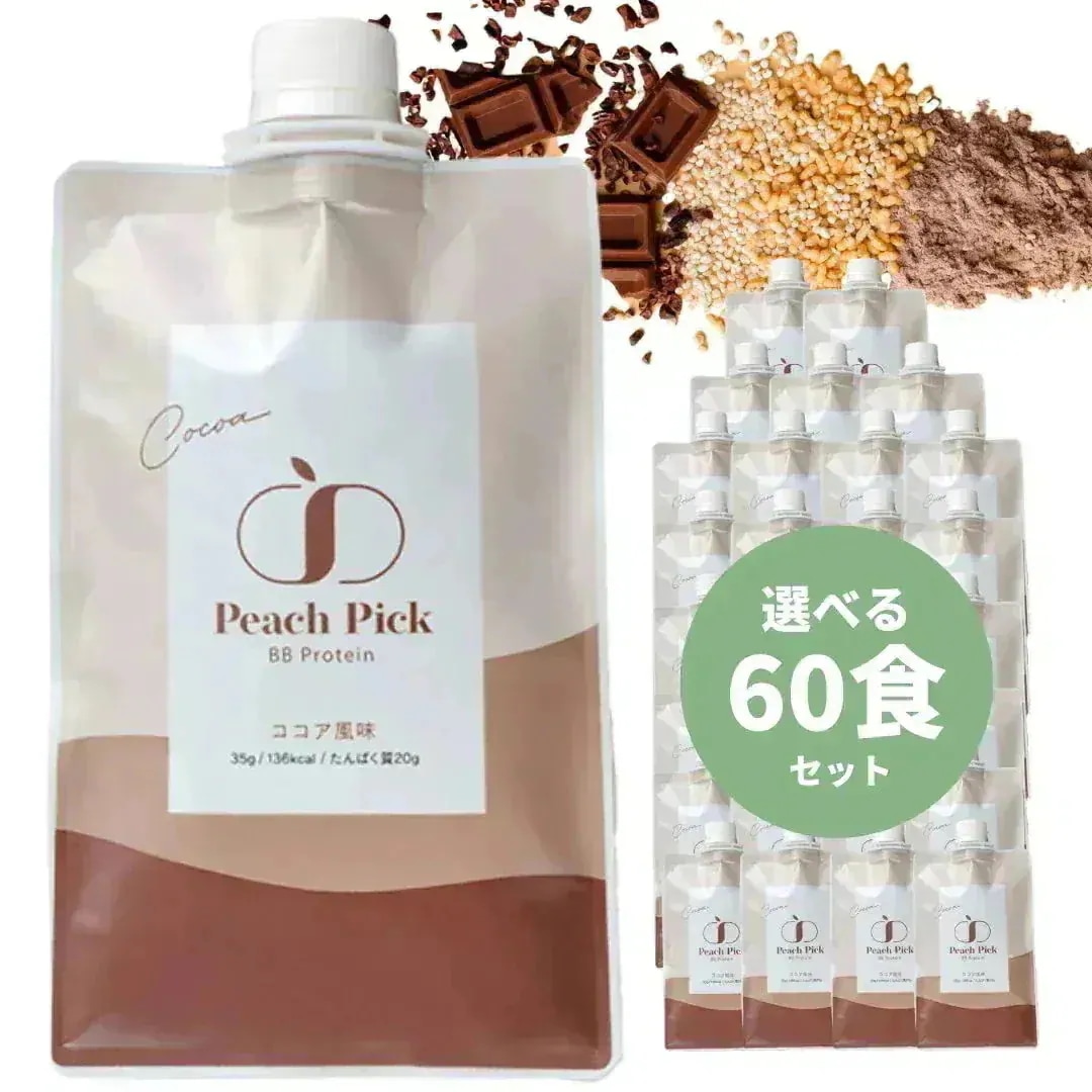 Peach Pick【60食】美容 置き換え ダイエットプロテインシェイク 女性 無添加 人工甘味料不使用 個包装 持ち運び ソイ ホエイ 【選べる味】 ココア味 抹茶味 ストロ