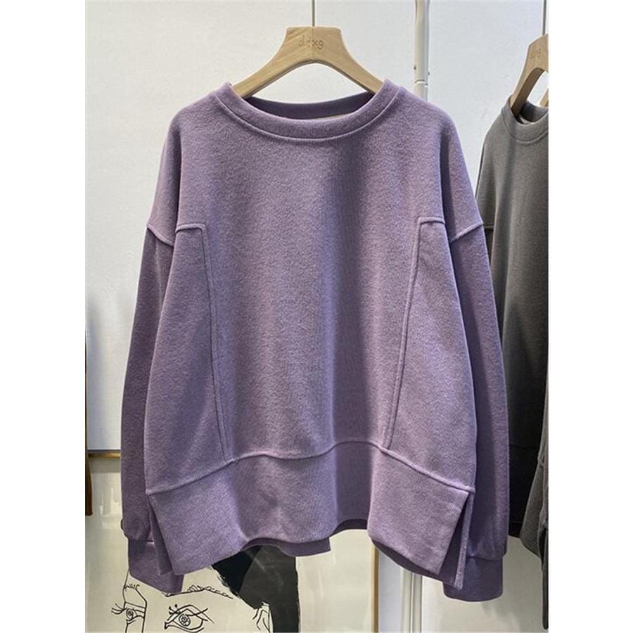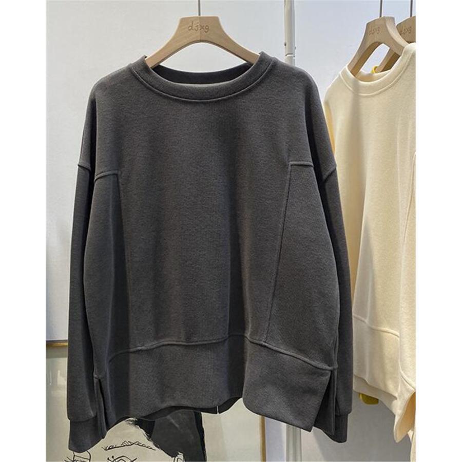 トレーナー レディース スウェット アウター スリット 体型カバー 長袖 プルオーバー トップス 無地 ゆったり シンプル 通勤 春秋 おしゃれ 韓国