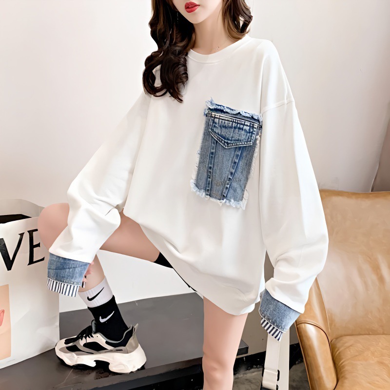 パーカー レディース デニム 長袖 スウェット 切替 トレーナー 春服 ゆる 体型カバー カジュアル