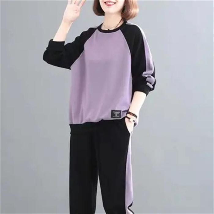 上下セット レディース セットアップ 配色 長袖 トレーナー ロングパンツ スウェットパンツ おしゃれ ボトムス カジュアル