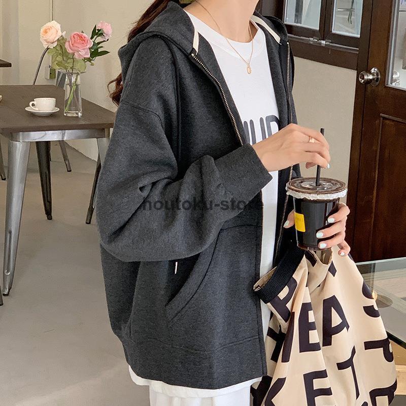 パーカー レディース トップス スウェット 通学 無地 体型カバー 長袖 無地 羽織り フード付き ゆったり トレーナー プルオーバー カジュアル