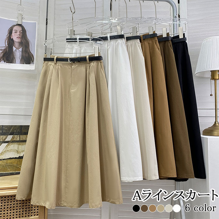 スカート ロングスカート ベイカースカート レディース スカート ロング 大きいサイズ ボ コットンン プリーツスカート 体型カバー Aライン フレア フレアスカート チノ ストレッチ