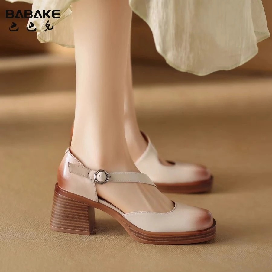 夏の女性のためのフランスのレトロストラップトーサンダル濃厚な四方のつま先シングルシューズハイヒール