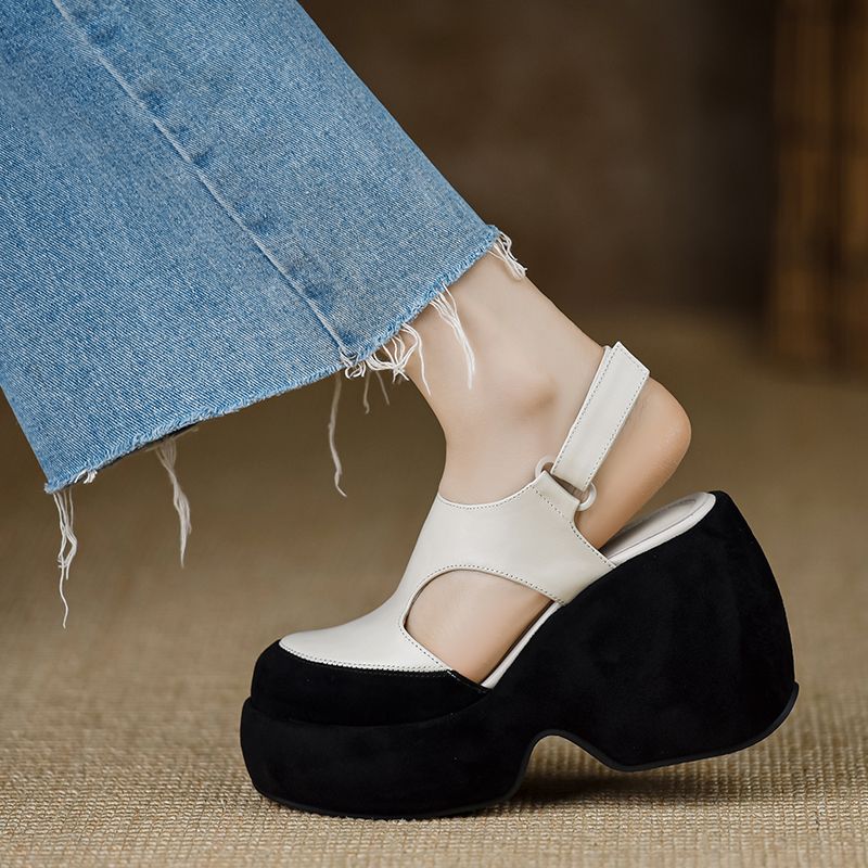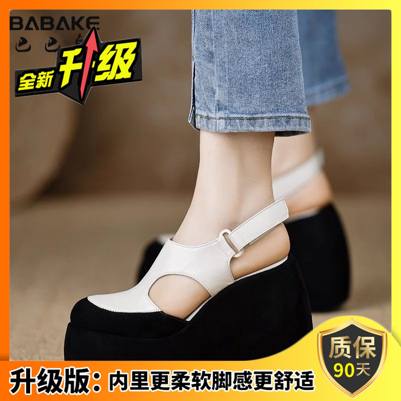 厚底サンダル 韓国ファッション 手作りの女性靴新しいウェッジウォータープルーフプラットフォームサンダル厚いハイヒール本革バッグヘッド