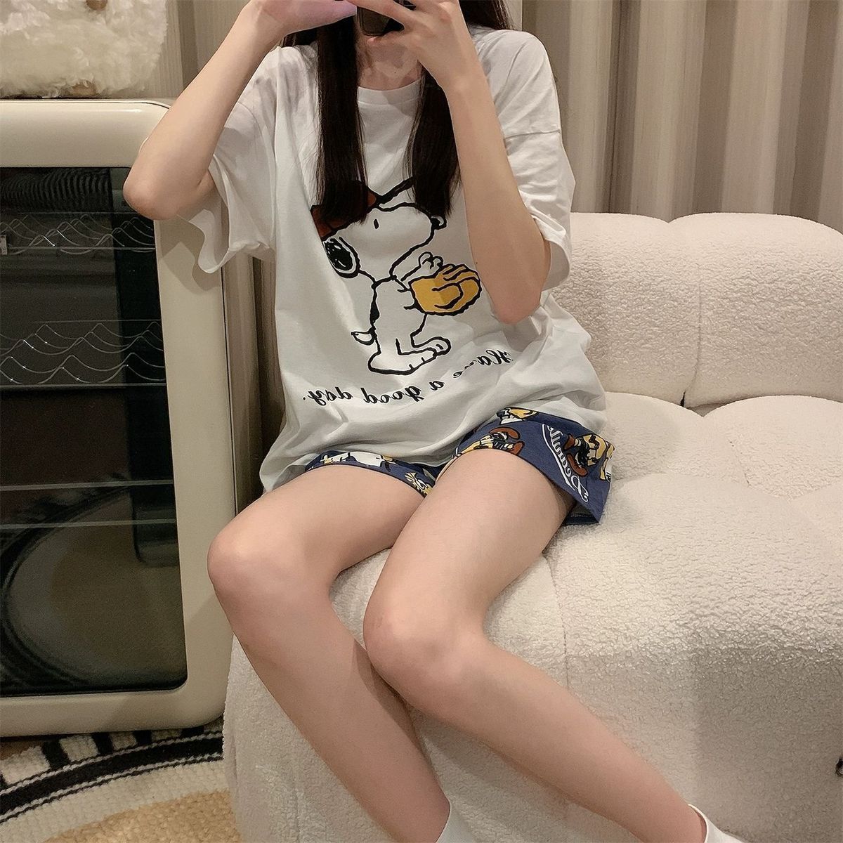 カップルパジャマ男女夏起半袖パンツアニメかわいいinsウェアセット