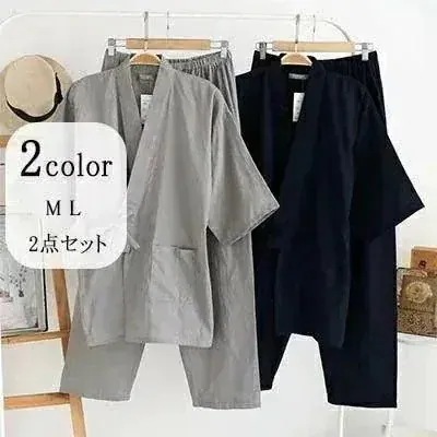 作務衣パジャマウエアメンズ和風パジャマ上下2点セット七分袖と長ズボンの上下2点セットメンズナイ