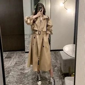 トレンチコート韓国人気商品トレンチコート アウター レディース 春秋 セミロング 英伦風 気質 カーキ