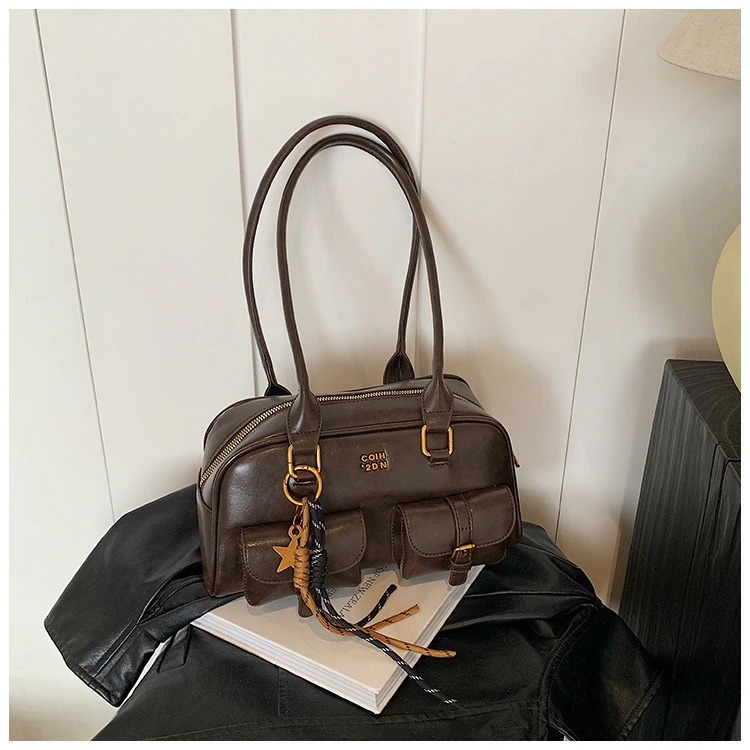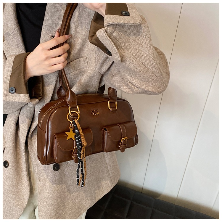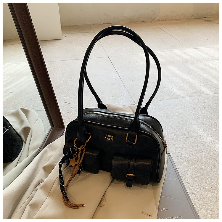 横長ボストンバッグ レトロショルダー脇の下バッグ女性新しい韓国のハンドヘルド大容量ボウリングバッグ
