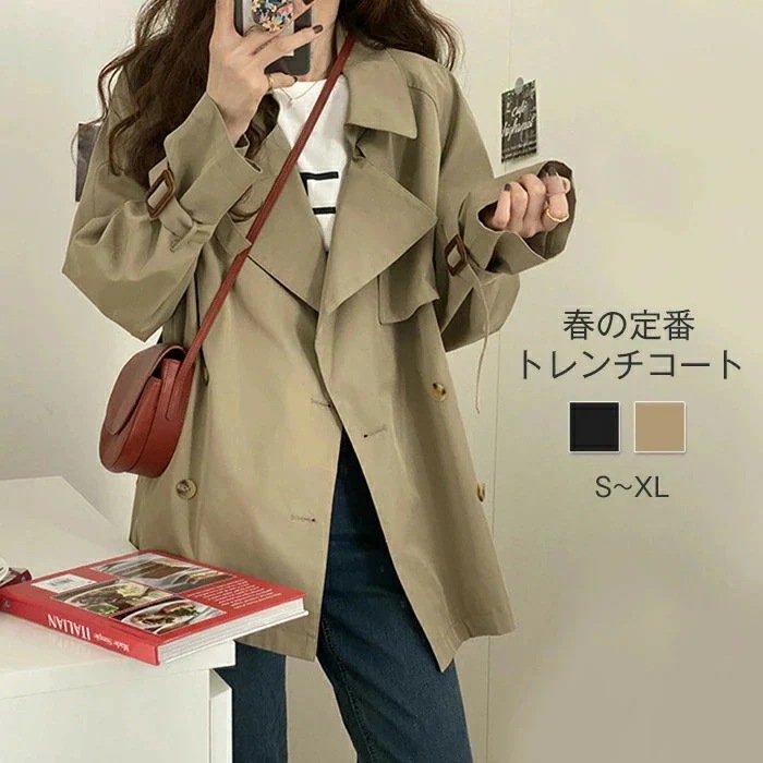 トレンチコート スプリングコート レディース コート アウター 長袖 春 秋 無地 トレンチ ベルト付き ジャケット ショートコート モッズコート ダブルボタン ジャケット カジュアル フォーマル 軽