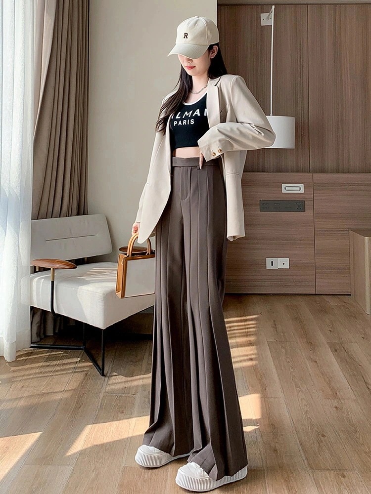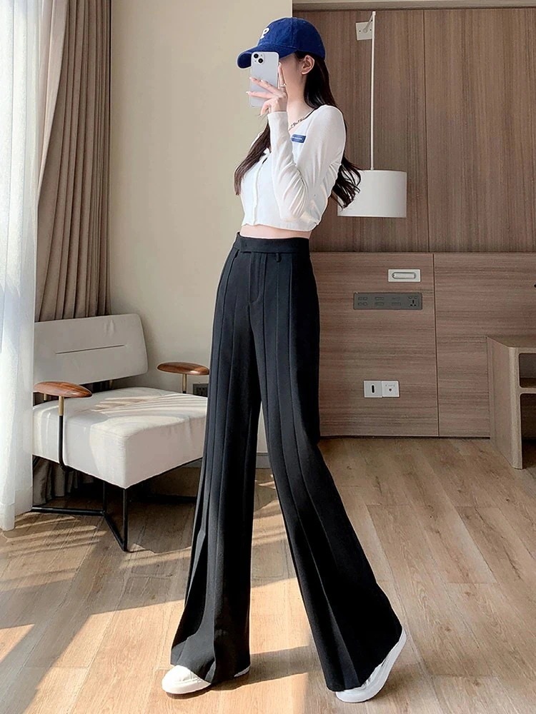 スラックスパンツ ワイドパンツ 韓国ファッション 春 薄手ハイウエスト フレアス 百掛け ロングパンツ ストレート