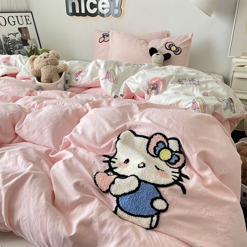 人気!刺繍ピンク3/4点セットins 韓国のかわいい 布団セットシーツベッド ブランケット 寝具 キャラクター布団カバー 枕カバー