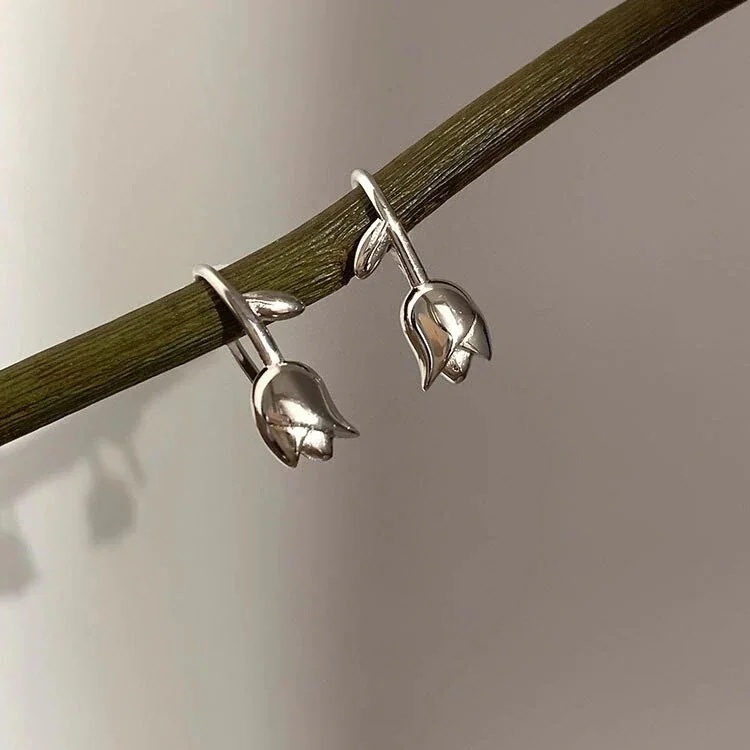ローズスターリングシルバーリップイヤーフックデザインセンセーションニッチフェミニンレトロイヤリ