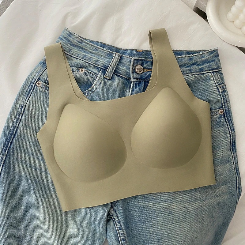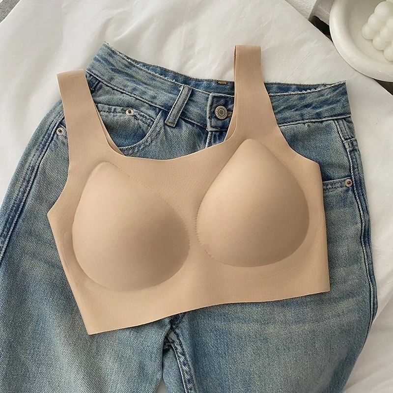 濃い肌色向けににデザインされた小さな胸の女性向けの目に見えないシームレス下着たるみ防止横胸縮小ブラ薄い白t不透明