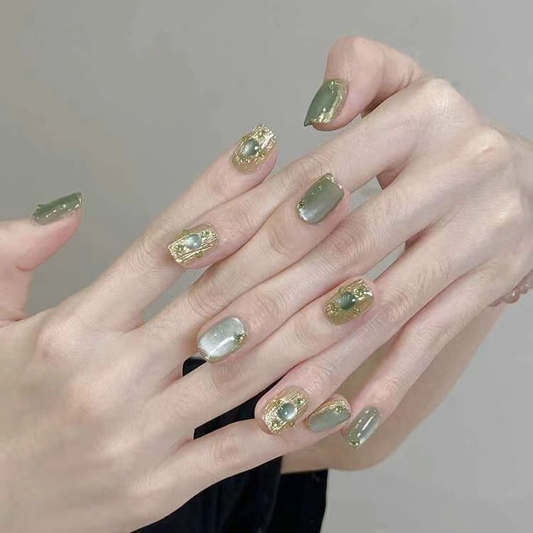 【イタリアンスタイル】純り抹茶グリーンキャットアイブチャラティのウェアラブルキラキラマニキュアが春夏に