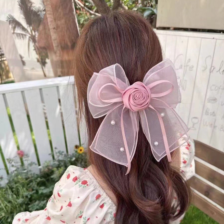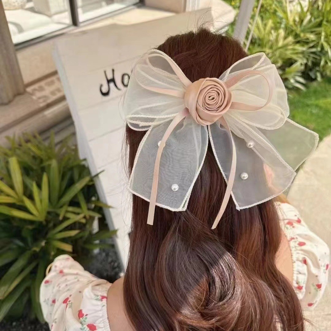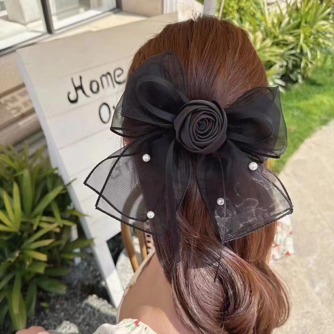 スーパーフェアリービッグリボンヘアアクセサリー気質ヘアピン女性の後頭部用スプリングクリップヘッドドレス