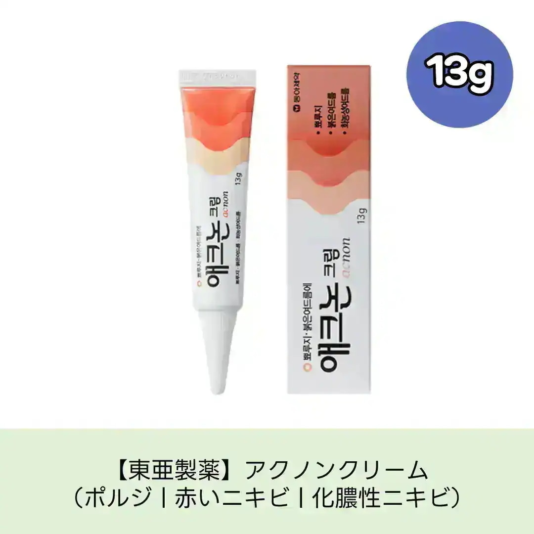 5 5nan*** 2026.02.09 商品:【東亜製薬】アクノンクリーム(原因菌除去炎症緩和)オプション : 商品:【東亜製薬】アクノンクリーム(原因菌除去炎症緩和) 肌タイプ : 乾燥肌 肌トーン : イエベ 肌の悩み : ニキビ・肌荒れ, 毛穴, 乾燥, シミ