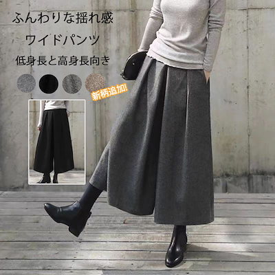 ワイドパンツ ガウチョパンツ レディース 秋冬 パンツ ウール調 ウエストゴム ポケット スカーチョ ワイド ゆったり ボトムス ズボン ウールパンツ フェイクウール 体型カバー 厚手 暖かい 下着