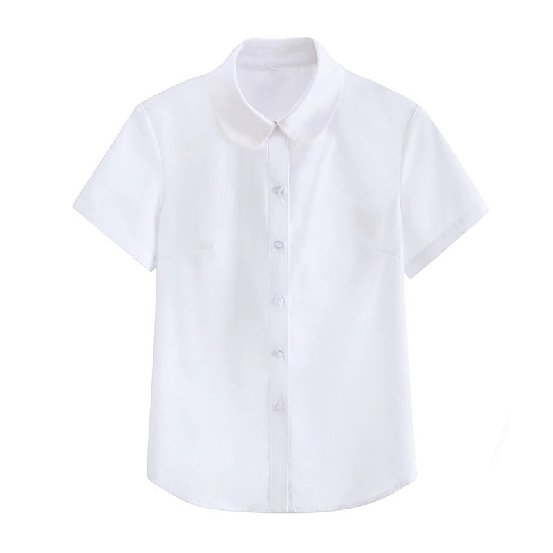 即納 ラウンドネック半袖 ブラウス レディース オフィス 白 ホワイト 半袖 開襟 シャツ ビジネス OL カジュアル 制服 事務服 大きいサイズ