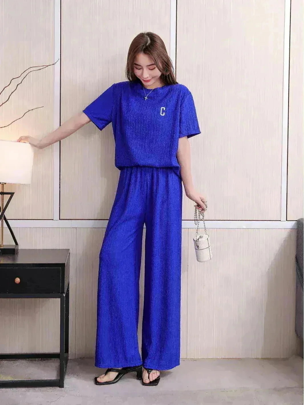 夏にこんな感じのズボンが欲しくて購入したけどめっちゃ細見えするし涼しい、なんならセットアップで外でれる。半パンスタイル良く見える骨格の人なら普段使いにもできる!生地も好き!
