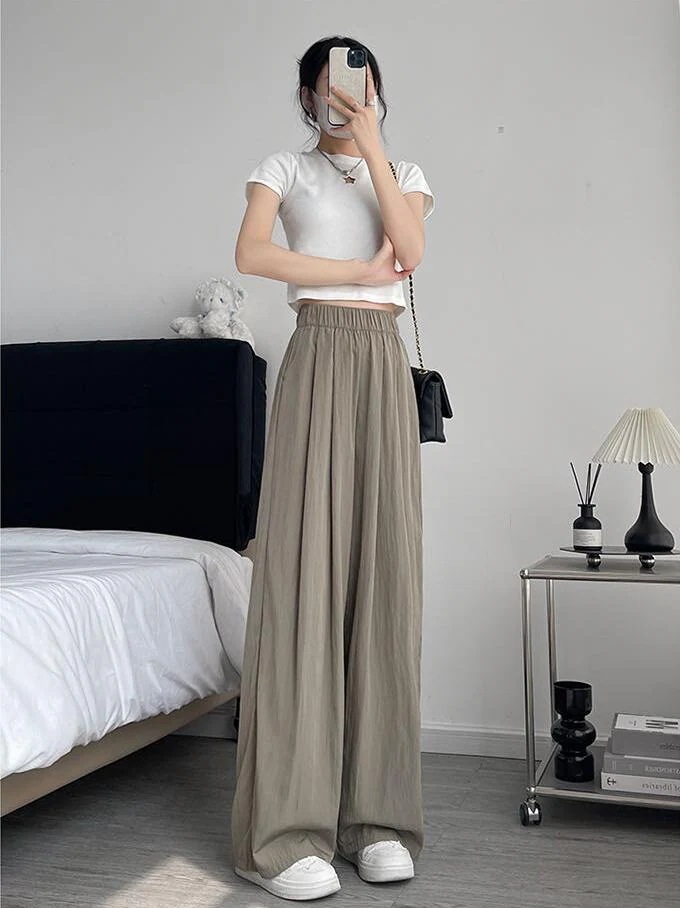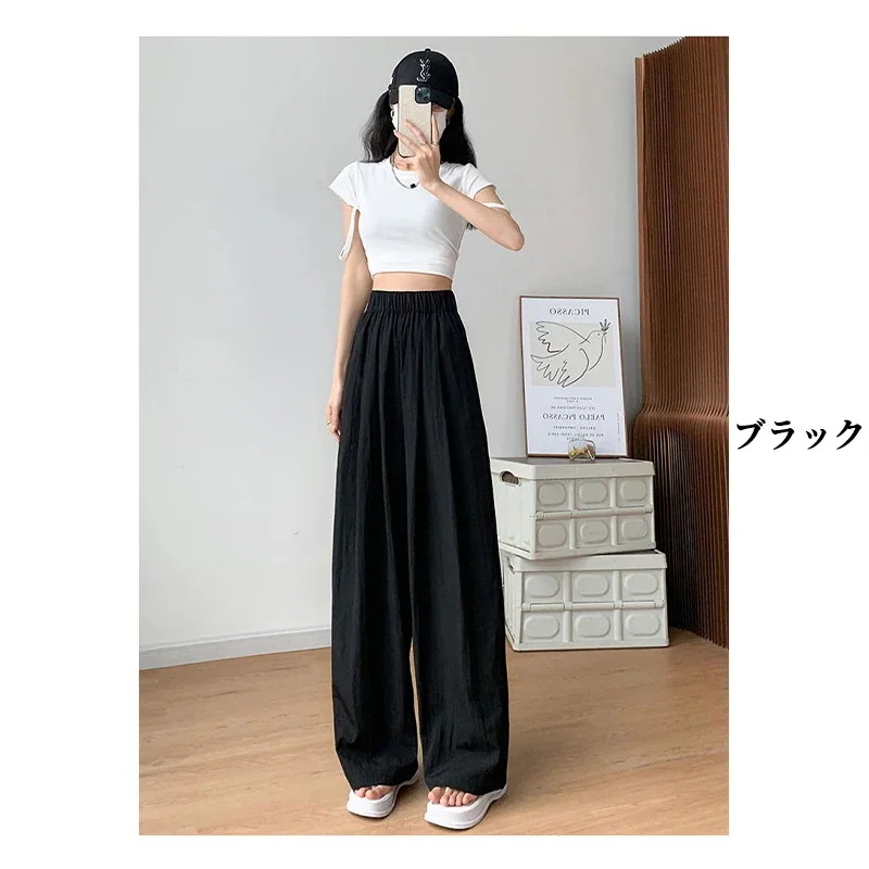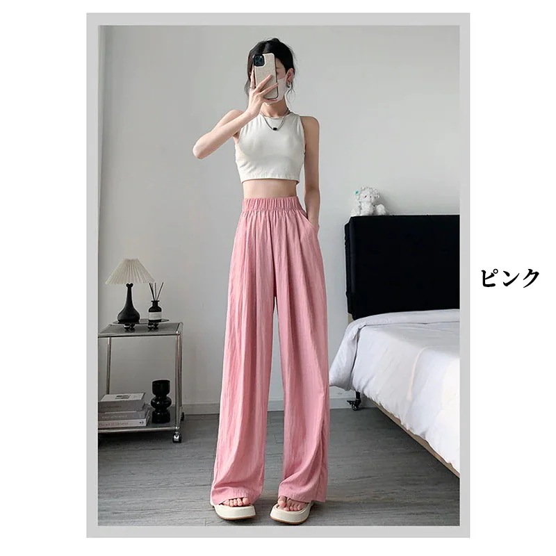 【2枚購入で1oo円OFF!】新作レディース ロングパンツ 無地 シンプル ゆったり ハイウエスト 脚長效果ストレートパンツ レディースワイドパンツ ボトムス 美脚ワイド パンツ ズボン 夏冷感パンツ